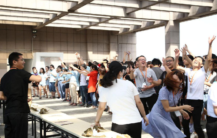 活動由胡萬陶老師擔任主持,首先由我們的總裁吳勇波為聯欣家人送出了佳節祝福,,然后由主持人介紹當天活動的流程和游戲環節,首先進行的游戲是“吃棕子比賽”,每四個人組成一組并一字排開,當每位小伙伴帶上眼罩,準備就緒后,主持人一聲令下,參賽者馬上開始狼吞虎咽的快速的吃起棕子,甚至有些男伙伴給我們展示了什么叫“一口吞”的絕活,還有那些平時比較斯文的女生們也展現出了令人出乎意外的一面,為了勝利不惜犧牲形象。雖然最后的贏家只有一組,但每個參賽者都是全力以赴,只為了能為團隊爭光,現場氣氛十分熱烈,整個場面歡聲笑語接連不斷。其次進行的是“五月五 佩香袋 送祝福”的活動,伙伴們一一上臺為遠自他鄉的父母親及兄弟姐妹送上祝福,希望每一位身體健康、萬事如意,也為聯欣送上了祝福,祝愿聯欣紅紅火火。
