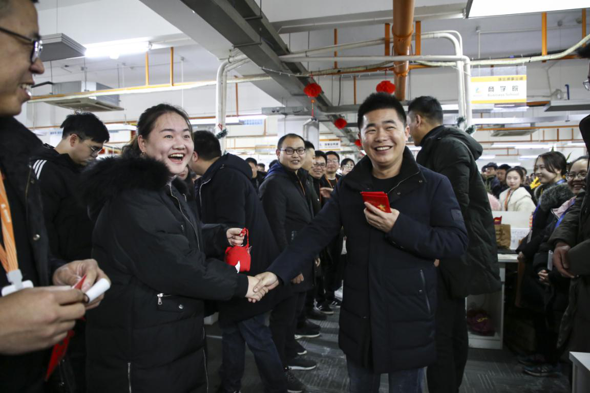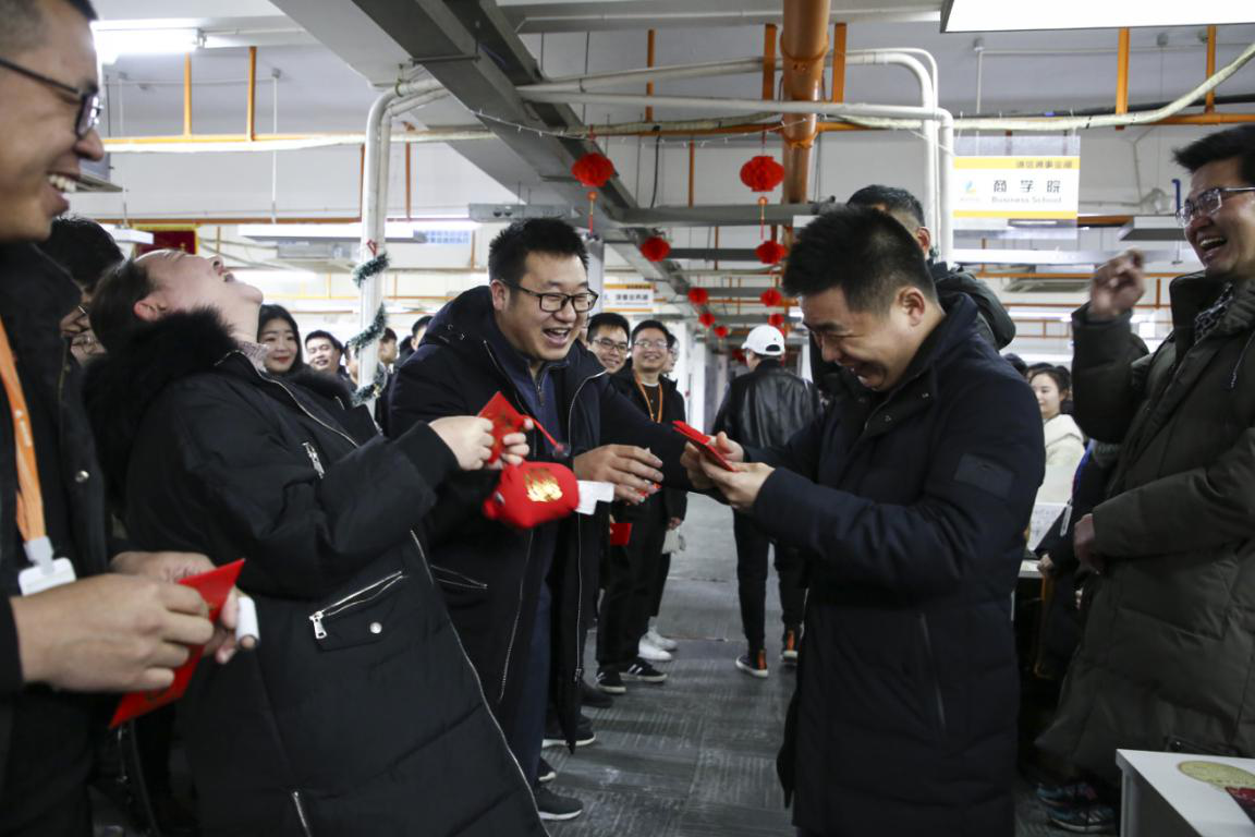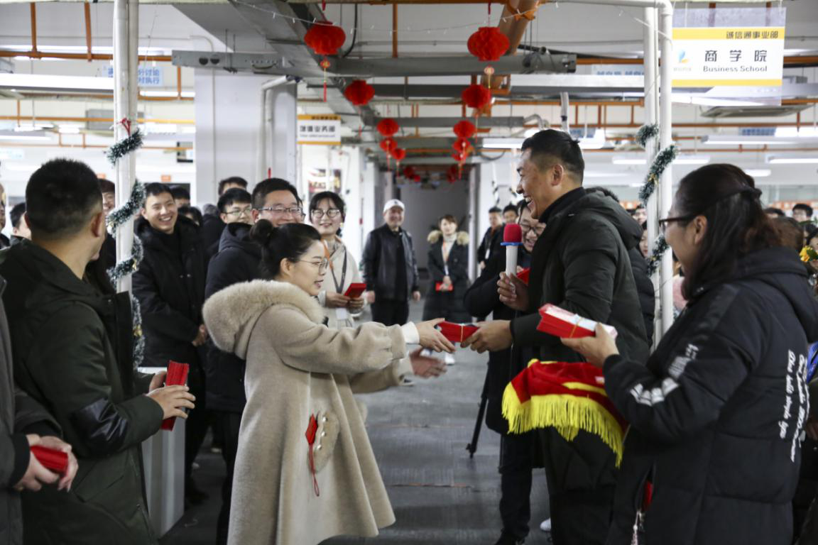 隨后,董事長趙新立先生攜公司股東層為廣大員工送上了新春問候和誠摯的祝福,并給員工派發(fā)了新年慰問紅包,意味著新年好彩頭,紅紅火火,將現(xiàn)場氣氛推向了高潮。