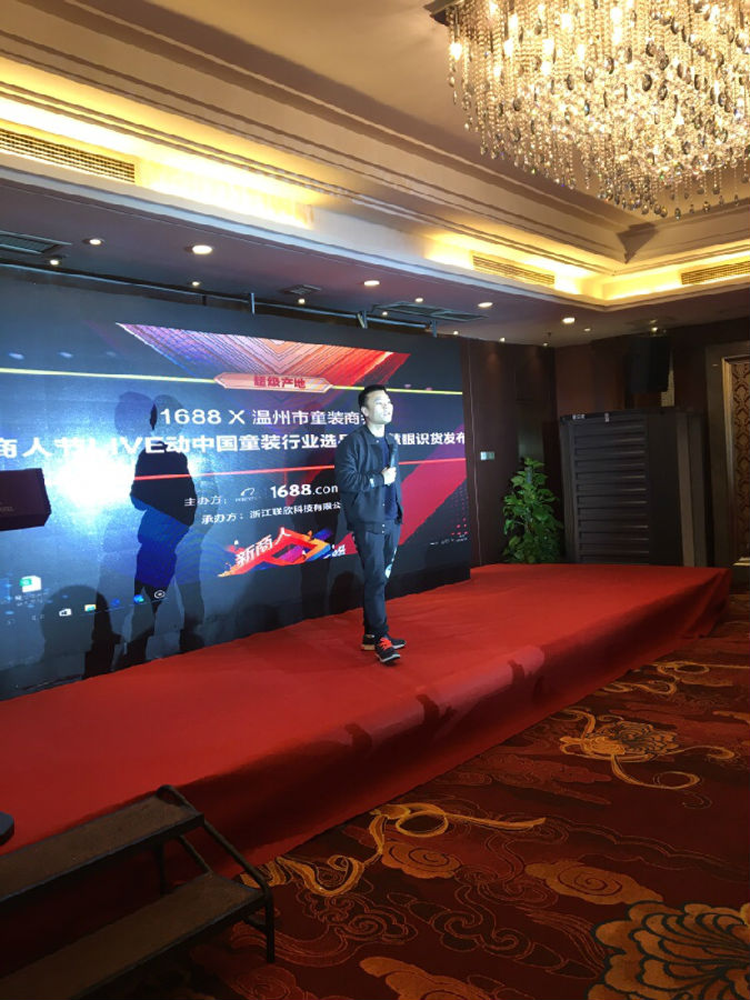 3月9日下午,由阿里巴巴1688.com和溫州市童裝商會聯合主辦的3.28商人節LIVE動中國--童裝行業選品會暨慧眼識貨發布會,首場發布儀式在溫州萬融商務大酒店舉行,阿里巴巴浙江大區渠道營銷專家高錚、聯欣科技運營總監居麗芳、溫州市童裝商會會長陳錢軍等領導參與了本次發布會。