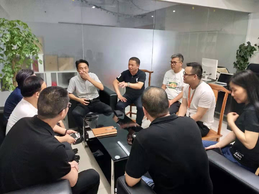 路橋區政協陳主席及區商務局馬書記在臺州聯欣網絡科技公司創始人李化福的帶領下,認真的了解聯欣公司的業務部門劃分,職責分工,實地感受了服務團隊的工作環境,培訓環境、拍攝環境等,并詳細詢問了傳統企業轉型電商過程中的相關難點痛點,作為政府職能部門還需要為企業提供哪些幫助,讓更多的企業能順利轉型電商渠道中,臺州聯欣公司李化福針對相關問題,對調研團一行人員都做了詳細的介紹并進行了詳細的探討。
