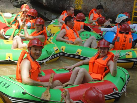駕著無動力的小舟,利用船槳掌握好方向,在時而湍急時而平緩的水流中順流而下,在與大自然抗爭中演繹精彩的瞬間,這就是漂流,一項勇敢者的運動。一條蜿蜒流動的河,延伸在峽谷堅硬的腹地。乘著橡皮艇順流而下,天高水長,陽光普照,四面青山環繞,漂流其間,迎面而來的是一種期待--期待刺激!期待驚險!期待與自然的搏斗!期待"有驚無險"后的輕松!