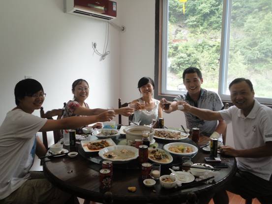 午餐是九溪漂流基地的農家樂,吃慣了城市快餐的我們,在一道道山間美味的面前食欲大開,還是快來看看吃著美味農家樂的我們吧。