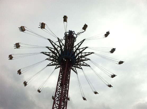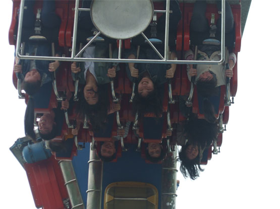 天旋地轉要在高空中進行360度旋轉.人就突然從頭朝上快速轉換成頭朝下. 驚險!刺激!尖叫!吶喊!瘋狂!眩暈!縱情!挑戰!激動!釋放!激情!體驗!精彩!天旋地轉!