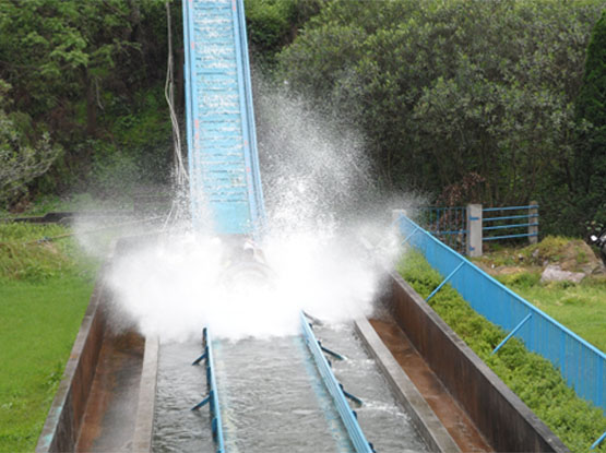 坐著小船悠然蕩漾.山回路轉后期待一片爛漫的桃花源般的仙境.哪知小舟突然間仿佛順著九天上的銀河凌空而下!自高而下的俯沖力量.隨即四周濺起巨大的浪花.驚險刺激!真切地感受到[飛流直下三千尺"!隨著浪花的消失和游船趨向平穩.使人產生了歷盡艱險后勝利返航的喜悅心情.更體會到回歸大自然的無窮樂趣!