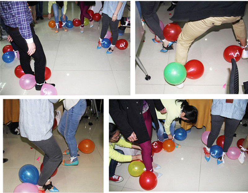 下個(gè)節(jié)目踩氣球,全體技術(shù)部人員分成三大組。由三個(gè)壽星作為隊(duì)長,再從各自隊(duì)伍中挑選一個(gè)副隊(duì)長作為隊(duì)長的幫手,其余伙伴就是各自隊(duì)長的啦啦隊(duì)了。游戲規(guī)則:游戲結(jié)束時(shí)腳上氣球數(shù)量剩下最多的隊(duì)伍獲勝。小段一聲令下,六人迅速展開了激烈的廝殺。 踩氣球