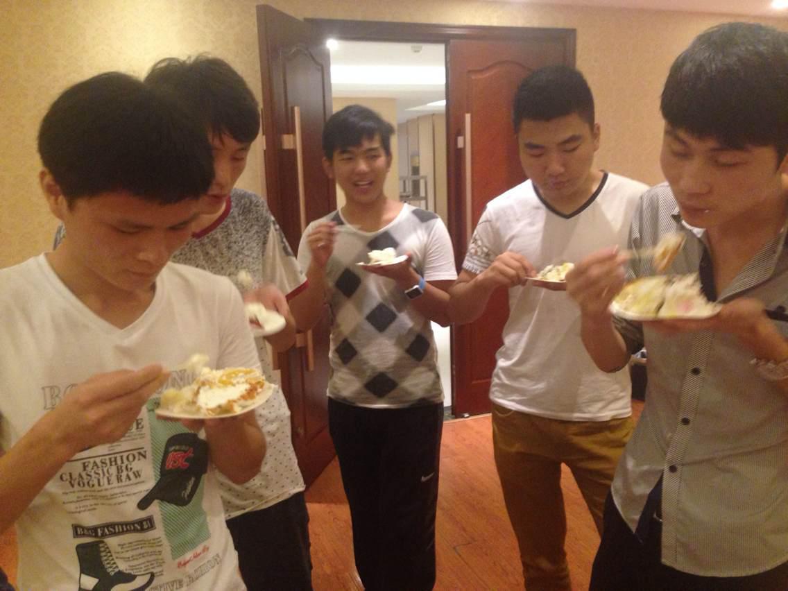 面對這個芳香四溢的雙層水果蛋糕,大家早已經“繳械投降”了,能和這么多人一起開心的過生日,這個蛋糕除了它本身的甜味還有更多意味,因為我們感受更多的是家的溫馨。